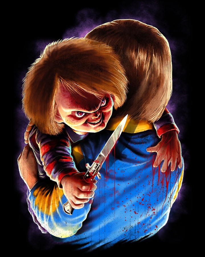 Osbourn and Ajmal’s designs are also available separately, as are additional Chucky shirts from Coki Greenway and Christopher Lovell. Rounding out the Chucky collection is an 18×24 screenprinted poster by Kyle Crawford. Limited to 100, the print features a glow-in-the-dark layer that reveals Charles Lee Ray’s voodoo spell.