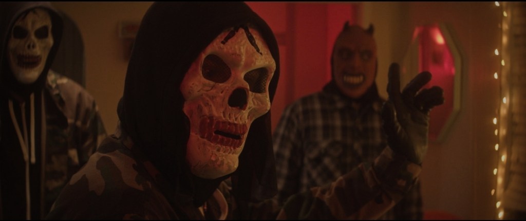 As the poster states, Nothing Good This Way Comes and when the first wave of men in devil masks breaks into Romina’s house, all hell breaks loose and it never lets up after that. This is where For the Sake of Vicious really shines. The lived in feel and overall look of the film, the choice of lighting, all of the million things that fall under the huge umbrella of cinematography are so perfect and it all works in perfect harmony with the score. The impressiveness of the score cannot be undersold. Carrer has crafted a synth score that really works. This is no mere 80’s nostalgia music grab: the score is a character in it’s own right and sets the tone perfectly at all turns.