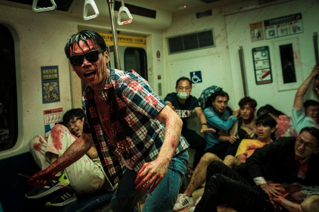 While Jim escapes on his moped with an angry mob running after him, Kat is enjoying a book on the train when the man sitting next to her begins chatting her up and this is when Jabbaz lets the audience know that he is not only taking aim at armchair scientists who think they know more about virology than doctors, but he will also chime in on the Me Too movement as well: Jabbaz does a standout job of showing what women go through on a regular basis while just trying to live their lives. Of course, Kat not only has to deal with a businessman hitting on her, but she also has to contend with a train car that erupts into a blood bath of chaos when an infected man starts randomly stabbing people. Blood. Is. Everywhere. This scene is what you crave from a horror film: it is stressful, frenetic and gory. Jabbaz does a stellar job of balancing the manic scenes with moments of calm. During violent moments, the camera and score is as unsteady and keyed up as the characters, but in the non-violent moments, the tracking shots are bright and easily hi-light the world around them.