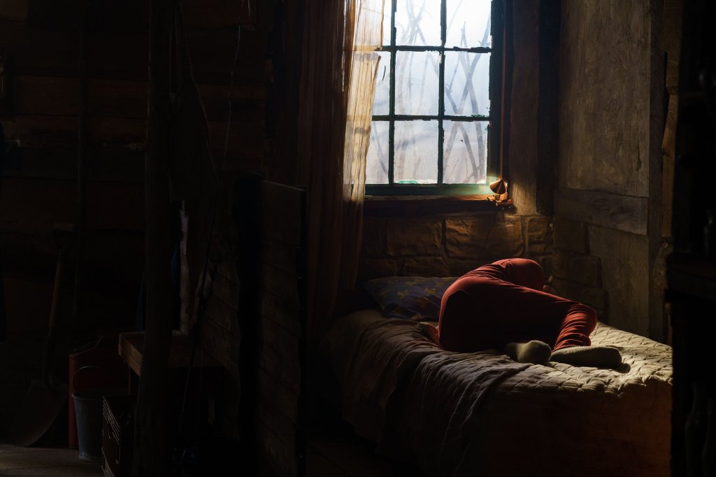 Lucky McKee’s Old Man is a rumination on loneliness and regret. An old man (Lang) lives by himself in a cabin in the middle of nowhere. Dishevelled himself, the cabin is rustic and it seems like he is living well off the grid. When he gets a visitor Joe (Senter), he is immediately suspicious. What does he want? How did he get there? The two men eventually sit down and begin talking…