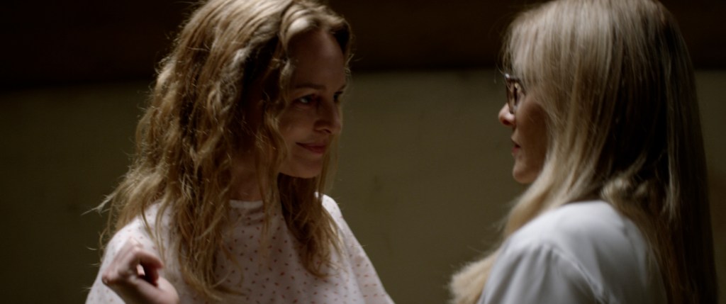 Opening with Dr. Daniella Upton (Crampton), and two orderlies walking to the room of a very dangerous patient. In that padded room is Dr Upton’s friend, Dr. Elizabeth Derby (Graham). Elizabeth pleads for Daniella to listen to how she got here, Daniella agrees, and Elizabeth recounts the story of how she met the troubled Asa (Lewis) through her psychiatry work. She tells Daniella about his extreme personality disorder which wasn’t really a disorder at all. In actuality it was Asa’s father (Davison) who is possessed by something that wants to try and take Asa’s body. Derby is drawn to Asa, and her life spirals into horny, blood splattered, body swapping madness.