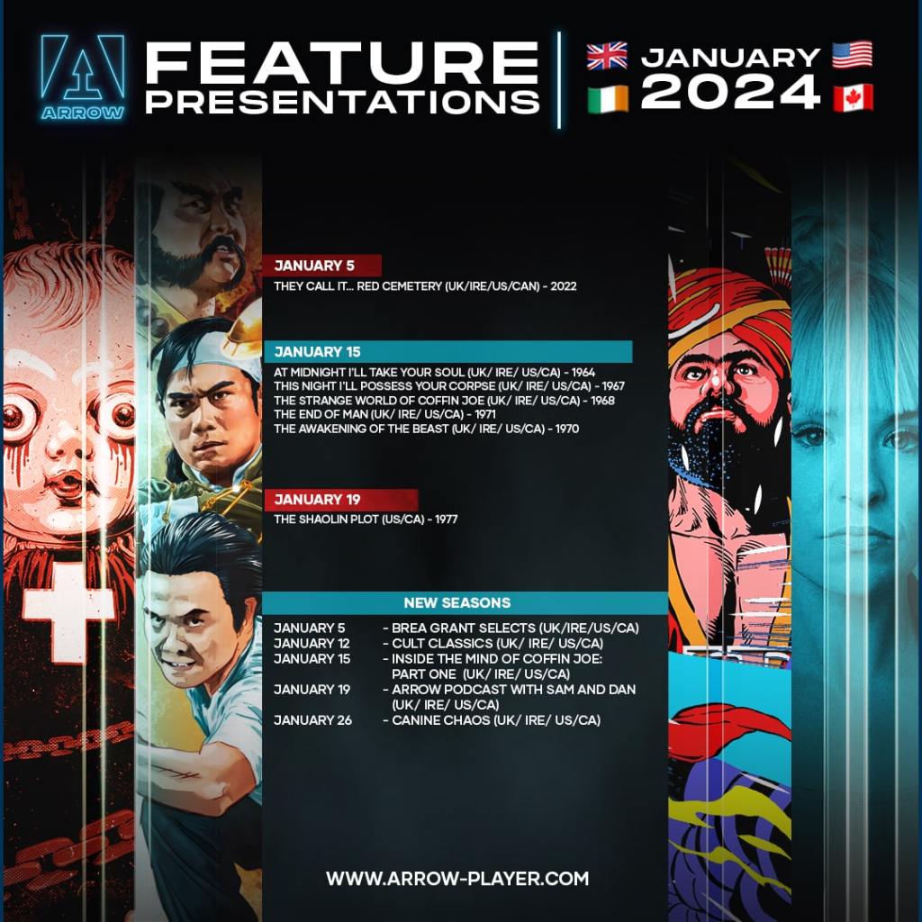 Arrow Video is excited to announce the January 2024 lineup of their subscription-based ARROW platform, available to subscribers in the US, Canada, the UK and Ireland.