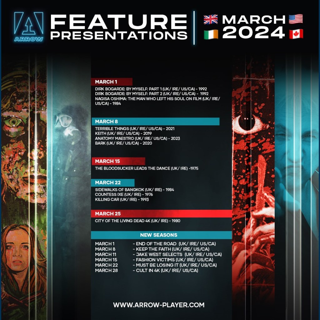 Arrow Video is excited to announce the March 2024 lineup of their subscription-based ARROW platform, available to subscribers in the US, Canada, the UK and Ireland. Embrace March Madness with a selection of new titles, from shorts by new talent to deep dives into filmmakers that changed cinema forever.