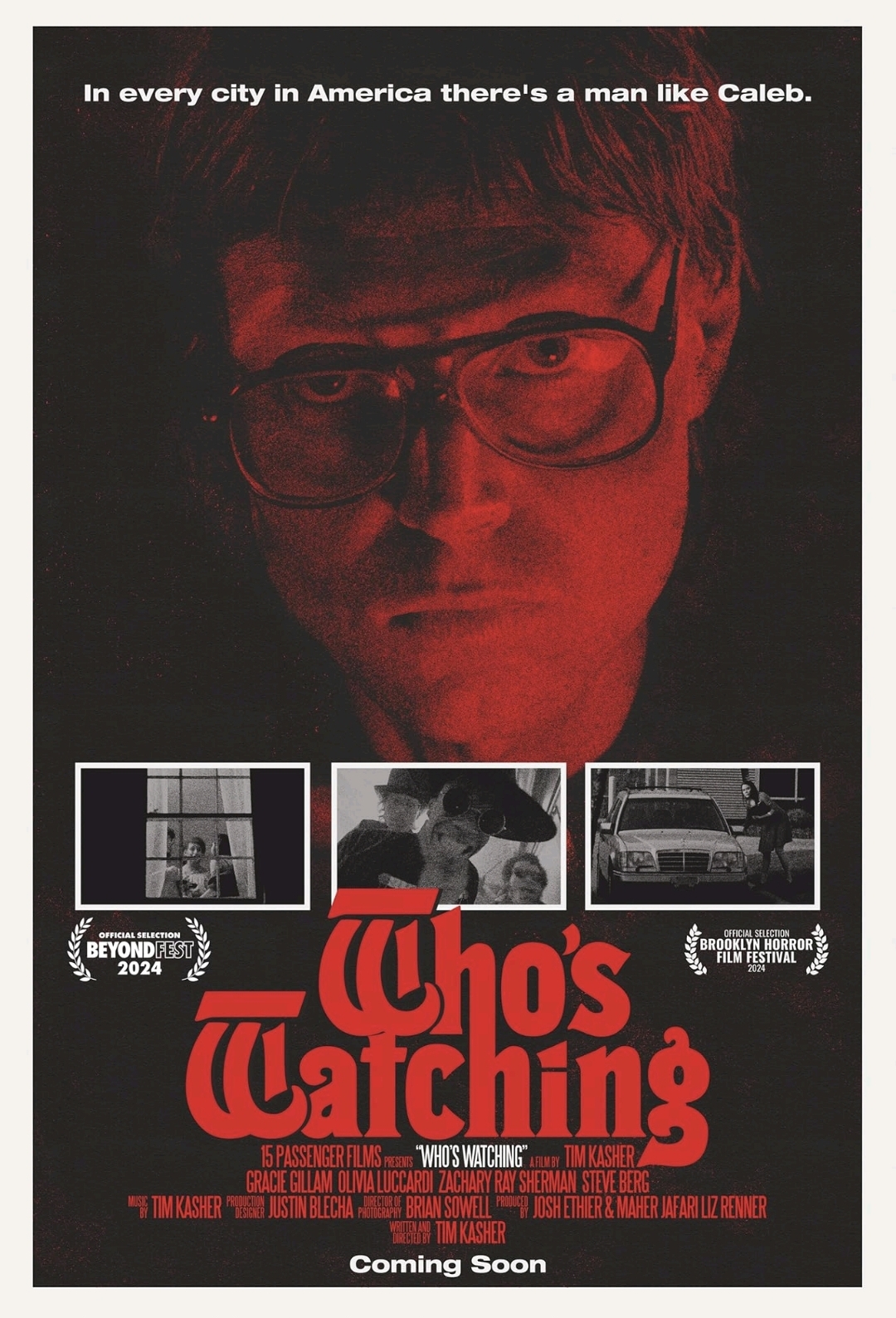 Krista (Gracie Gillan) is the new girl at work and Caleb is immediately taken with her. He begins stalking her, videotaping her through her windows and then escalates to installing cameras in her home and even following her on a camping trip. Caleb is a certified creeper who thinks he’s got it all figured out, but what if he’s not the only one with a camera who is recording everything?