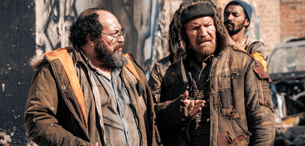 Street Trash has plenty to say about the state of the world and none of it is good. Set in a dystopian Cape Town, things are bleak. High unemployment, lack of effective government, and out of control crime. The rich getting richer and the poor getting crushed. With all this, of course comes the large contingent of homeless people and Mayor Mostert (Warrick Grier) has secretly developed a very disgusting way of getting rid of the city’s homeless. By melting them.